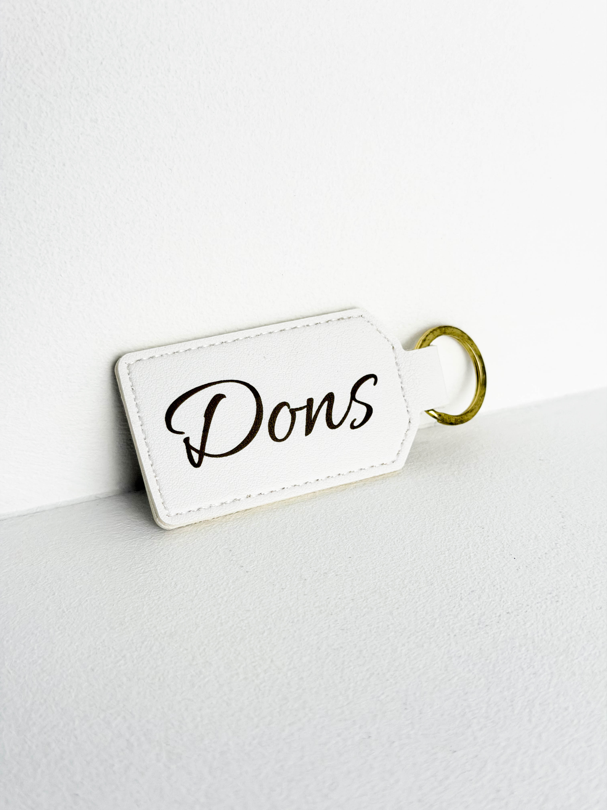 A leather keychain with custom name engraving, designed to add character and lasting meaning to an everyday accessory.