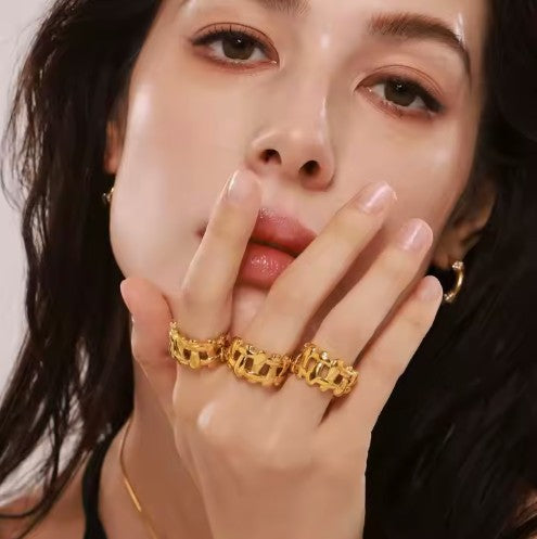 Mūsdienīgs, strukturēts un bez piepūles stilīgs — GOLDEN GRID gredzens ir godinājums līdzsvaram un drosmīgam dizainam. Tā ģeometriskais raksts pievērš skatienu, bet zelta apdare piešķir mūžīgu izsmalcinātību. Ideāla robeža starp modernu asumu un eleganci.